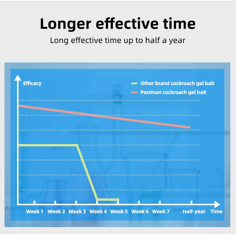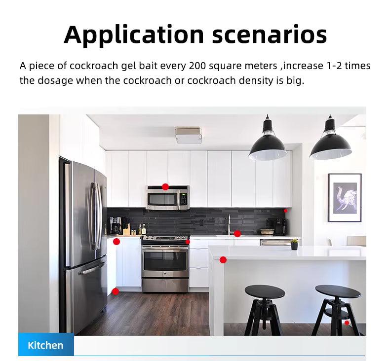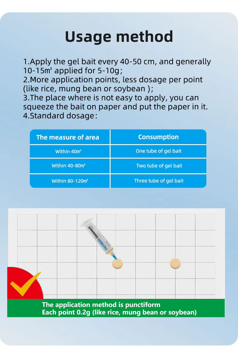 Suitable for both residential and commercial settings, Pestman® Cockroach Gel Bait can be applied indoors and outdoors. It is particularly effective in kitchens, bathrooms, and other areas prone to cockroach activity.